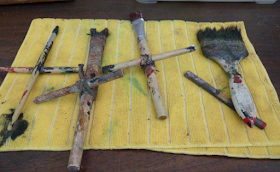 Pincéis são reforçados com varetas para serem inseridos dentro das trombas dos elefantes. Foto: OGP.